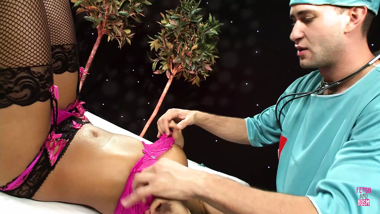 A seductive brunette in delicate lingerie visits the plastic doctor for a routine appointment. However, she doesn't expect him to give her a special treatment. The doctor, with his impressive big dick, starts eating her pussy while she moans in pleasure, dressed in her alluring lingerie.