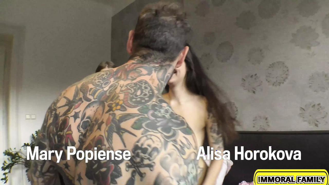 Mary Popiense and her best friend, Alisa Horokova, have been making the most of their Valentine's Day. These big booty bitches have been getting the dick down they desire, thanks to Porno Dan and his stepson Dean. Alisa has just licked Dan's creampie from submissive Mary Popiense, and they both still want more. Naturally, busty Alisa tells Dean that for her to have the best possible orgasm, he needs to pound her in the ass. The Englishman with a big cock rams and rails Alisa Horokova with no mercy and makes her orgasm so hard she screams with pleasure. The submissive best friend of Alisa Horokova, Mary Popiense gets her slutty pussy slammed while she uses a vibrator and has orgasm after orgasm. Dean fucks the big natural tits of Alisa while Mary licks his balls and shoots his cum in their mouths. Both of the baddies cum swap just as Mary's boyfriend, James, comes home. Mary Popiense yells at the loser for not getting her flowers on Valentine's Day, and the poor cuck leaves this two-tim