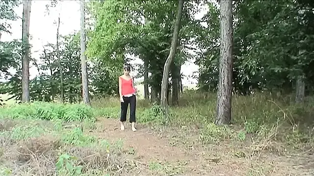 Naughty teen joins a mature couple fucking in a park