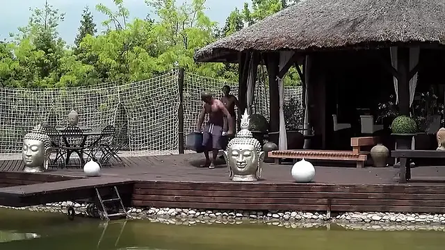 Blonde Babe Gangbanged by Black Stepbrothers Poolside